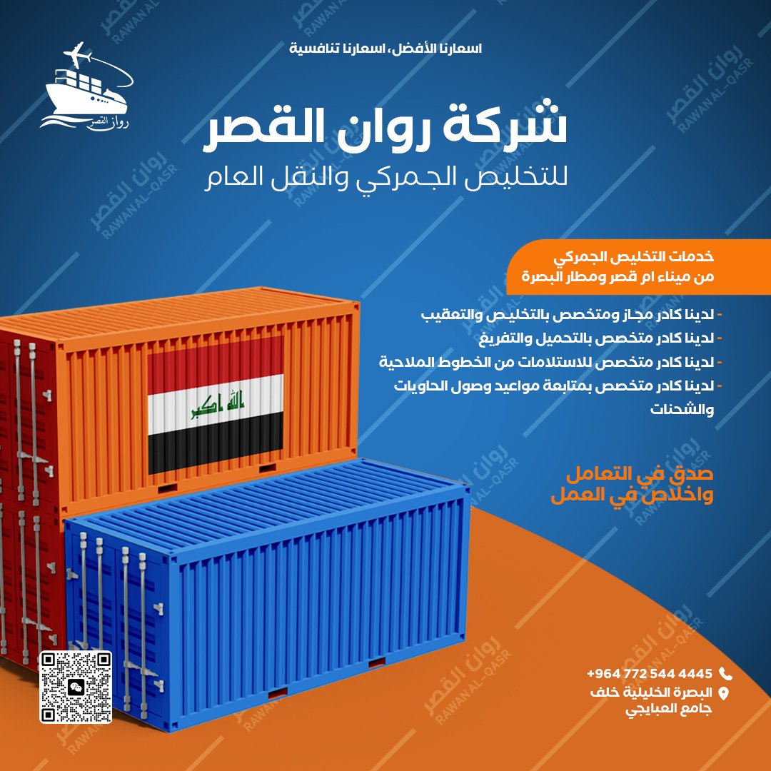 في روان القصر، نضع رضا العميل في صميم أولوياتنا، ونسعى لتقديم خدمات تخليص جمركي ونقل تتميز بالكفاءة والسرعة. نهدف إلى تسهيل حركة البضائع من الموانئ والمطارات إلى وجهتها النهائية بأقل جهد وتكلفة ممكنة، مع الالتزام بالشفافية والدقة في جميع مراحل العمل، مدعومين بفريق متخصص ذو خبرة واسعة في الإجراءات الجمركية واللوجستية.